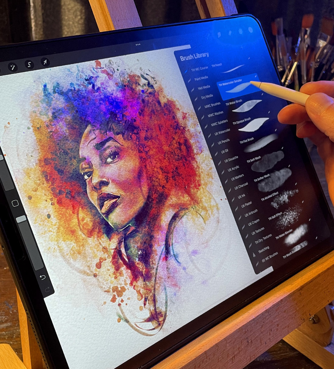 We’ll explore all of the techniques that I use to apply traditional methods of watercolor painting in a digital medium.